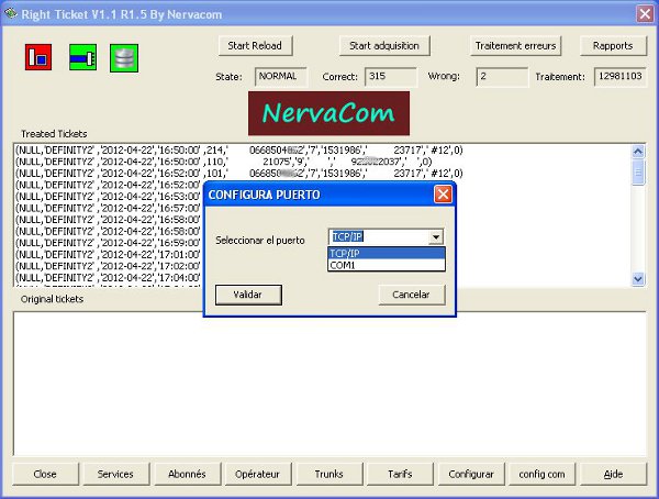 Righttax can receive tickets from all PBX (Avaya, Nortel, Siemens ...). The CDRs can be received on the COM port or on a configurable TCP port. The RightTax parameterizing allows it to adapt to all forms of tickets.